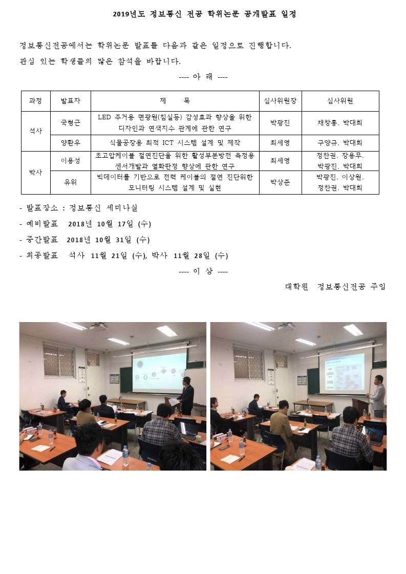 공지사항 홈커뮤니티공지사항 [대학원] 2018-2학기 학위논문 공개발표 일정안내 [대학원] 2018-2학기 학위논문 공개발표 일정안내 정보통신공학과2018-10-18 페이스북 트위터 구글플러스 이메일 프린트 이전공지사항다음